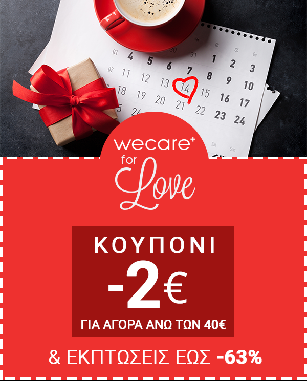 Δείχνουμε την αγάπη μας, με δώρα που έχουμε επιλέξει μέσα από το WeCare με έκπτωση έως -63% και κουπόνι επιπλέον 2 ευρώ για αγορές στο WeCare.