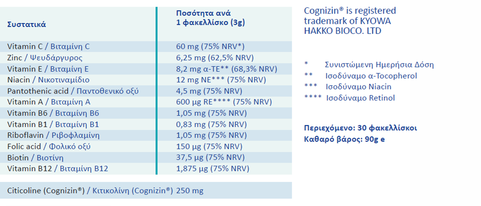 Το Cebrolux® NF NeuroFactor περιέχει κιτικολίνη Cognizin®, βιταμίνες και ψευδάργυρο: