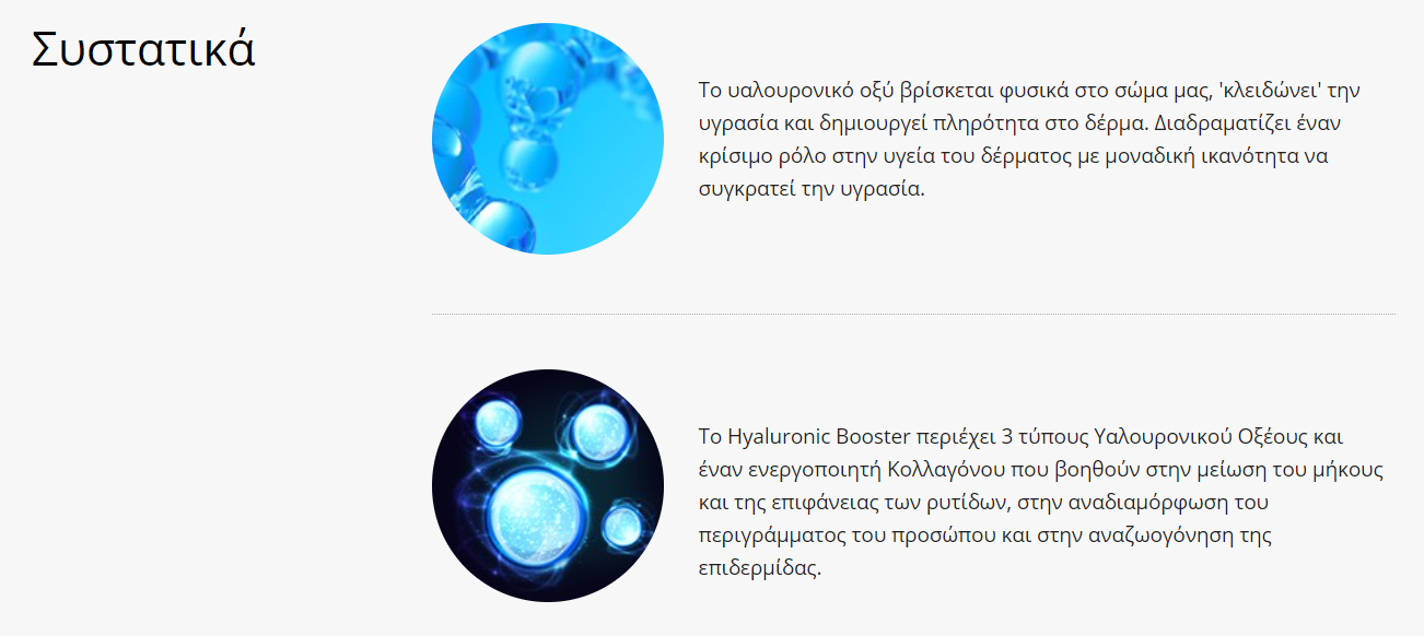 3. Συστατικό που διεγείρει τον φυσικό μηχανισμό παραγωγής Υαλουρονικού Οξέως: βοηθά στην αποκατάσταση του βέλτιστου επίπεδου Υαλουρονικού Οξέως διεγείροντας τη φυσική σύνθεση και ανανέωσή του, με αποτέλεσμα η επιδερμίδα να ενυδατώνεται εντατικά, το δέρμα να γίνεται πιο ανθεκτικό και σφριγηλό και οι ρυτίδες να μειώνονται.
