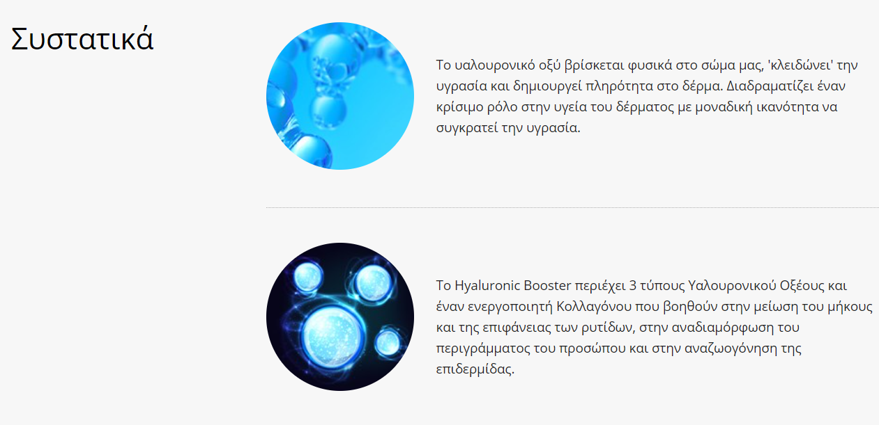 Η κοινοτόμος φόρμουλά της είναι εμπλουτισμένη με ΤΡΙΠΛΟ ΣΥΣΤΗΜΑ ΥΑΛΟΥΡΟΝΙΚΟΥ ΟΞΕΩΣ: