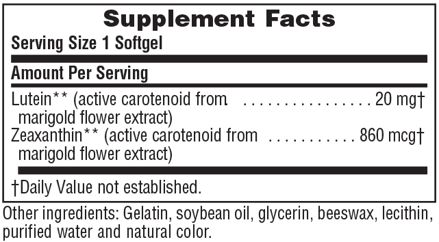 Κάθε μαλακή κάψουλα περιέχει 20mg Λουτεΐνη και 860mcg Ζεαξανθίνη.