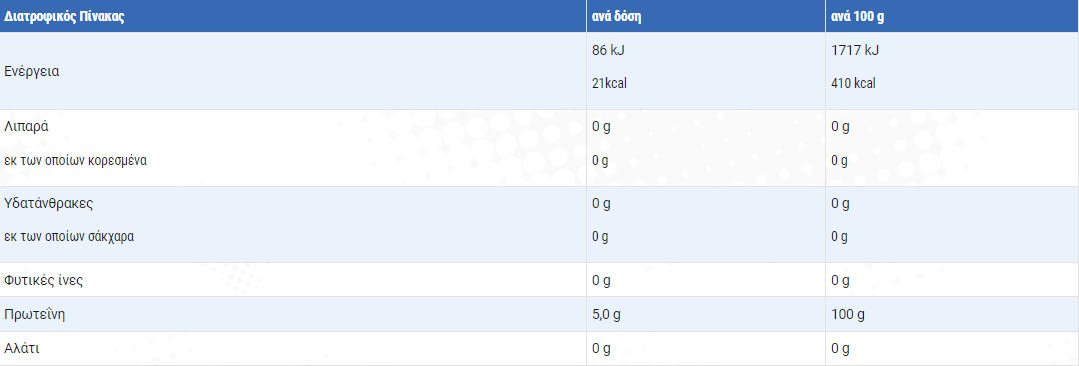 Συνιστώµενη δοσολογία: 3 - 5 g σκόνης αραιωµένη σε νερό